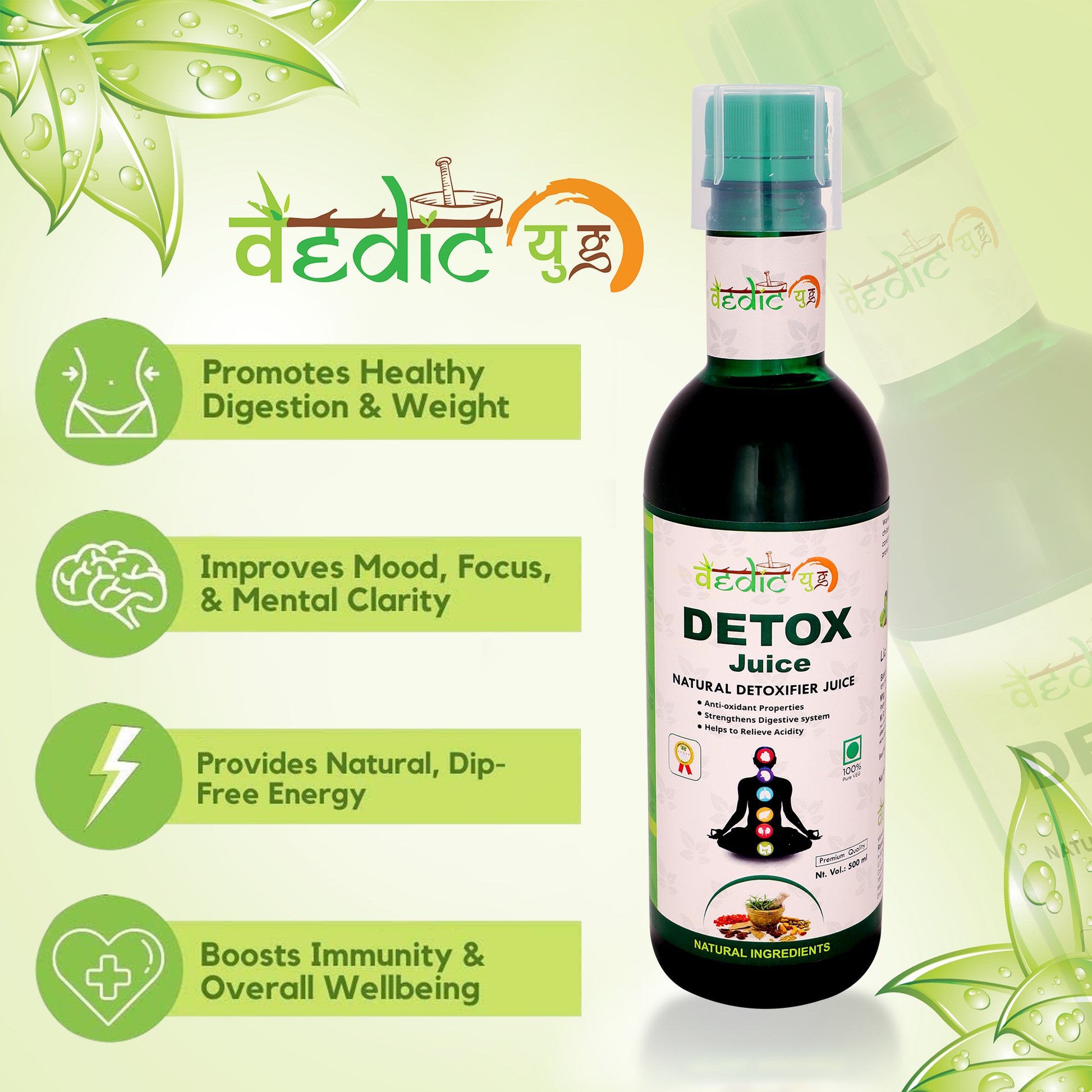 Complete Solution for natural Re-Growth of hair. It Contains 3 Units of Detox Juice to heal from inside and 2 Units of Scalp Tonic to work from outside.